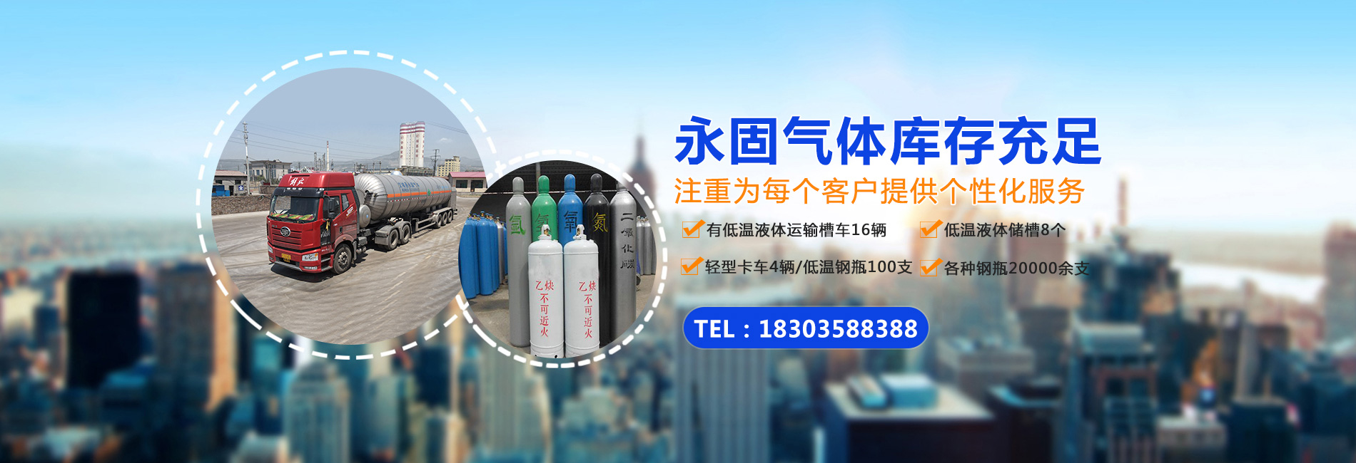 交城縣永固氣體有限公司于2004年成立,是一家集工業(yè)氣體銷售(液態(tài)二氧化碳、液氧、液氮,氬氣、氧氣、氫氣、氮?dú)?、氦氣、二氧化碳、焊接混合氣等瓶裝氣體以及各種標(biāo)準(zhǔn)氣體)、氣體設(shè)備銷售、維修(低溫鋼瓶、各種氣瓶、配件高中低壓汽化器等設(shè)備),體管道及壓力容器營銷、維護(hù)于一體的經(jīng)營服務(wù)企業(yè)。公司現(xiàn)擁有低溫液體運(yùn)輸槽車16輛,輕型卡車4輛, 低溫液體儲(chǔ)槽8個(gè),低溫鋼瓶100支,各種鋼瓶20000余支等。公司憑借強(qiáng)大的技術(shù)力量和人才優(yōu)勢(shì),為社會(huì)經(jīng)濟(jì)的可持續(xù)發(fā)展及和諧社會(huì)的建設(shè)作出新的貢獻(xiàn)。 交城縣永固氣體有限公司秉承“客戶至上,技術(shù)爭先,團(tuán)結(jié)協(xié)作,務(wù)實(shí)發(fā)展” 的經(jīng)營理念,在為社會(huì)提供合格產(chǎn)品的同時(shí),更加注重為每個(gè)客戶提供個(gè)性化服務(wù),做好每個(gè)客戶身邊的氣體專家?!皩?duì)社會(huì)負(fù)責(zé)、讓合作者滿意” 是我公司全體員工的工作要求。公司歡迎所有與氣體生產(chǎn)、銷售有關(guān)的企業(yè)和個(gè)人來我公司交流、洽談合作!